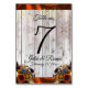 Den här designen har en elegans som gör den enkel. Wildblombuketter på vackra höstbuketter i färg och mousserande ljus med kopparribbon på en barnträbakgrund i ställe för bordsnumret, pars namn och bröllop datum. Designad för samordning med Rustic Wildblommor & Ribbon Collection. Om du vill ändra information klickar du på "Anpassa". Om du vill flytta texten eller ändra texten storlekt, teckensnitt eller färg klickar du på "Klicka för att anpassa ytterligare"