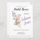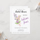 Blommigten Inbjudningskort för möhippan har en levande arrangemang av rosa-bilder och en lila vallmo som är tätt sammanbunden med ett charmigt rosa-band, som anger tonen för ett firande som är lika vackert som vildblommorna själva. Samma bukett av vilda blommor upprepas omvänt på inbjudan.