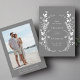 Den här inbjudan från spara till datum i elegant bröllop innehåller vilda blommor silhouette som en krans med ett foto och ytterligare text på baksidan. Om du vill ha en mer avancerad anpassning av den här designen klickar du på BLUE DESIGN VERKTYG ovan! Matchande objekt är också tillgängliga.