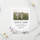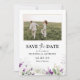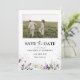 Lavender Spara datumet med ett fotokort. Den här snyggten och eleganten Spara datumet med ett fotoplattkort som har en fantastisk, handmålad vattenfärgsfärg Lila Greenery Lavender. Sök efter matchande objekt i Lila Greenery Lavender Collection.