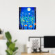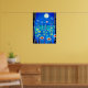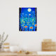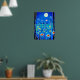 Poster in i en fantasi-scen av vilda blommor i skogen, under fullt, i nattblått och turkos