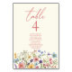 Det här är en Wildbloms Vild Flowers Blommigt Garden Wedding Bordsnummer med Namn!