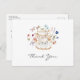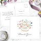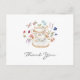 Wildblomme Tea Party Möhippa Postcard. Förenkla ditt tackkort utan att offra stil med vårt tack som du skriver ut, med en handmålad blommigt i rosa, dammblått och djup lila, accentuerad av sage grey and subtle-detaljer. vykortsformatet är bekvämt, medan den sofistikerade teckningen ser till att du får tacksamhet i stil. Låt detta vykort hjälpa dig att lämna ett bestående intryck av din speciella dag.