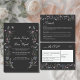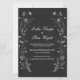 Bröllopsinbjudningskort med lila Wildblomdesign på en träkolbakgrund. Matchande artiklar tillgängliga! Sök efter "WF1" i arkivet.