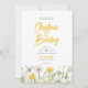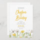 Inbjudan dina gäster till ditt vow-utbyte med det här vismska Wildblomsterbröllopet Spara datumet. Har fält av gult och vita dandelioner, fjäril, drakfluga och lush löv. Perfekt för en sommar eller vår bröllop, är denna vackra utformning roligt, ljus och mjölk.