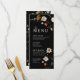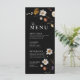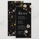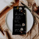 Bröllopsmenykort kännetecknas av boho-stil, blomsterkonst, svarta och beige färger, med en blandning av olika typsnitt, ofta i olika storlekar, för att skapa en unik, eklektisk look som gör denna meny naturlig estetik.