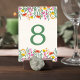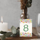 Colorful wildflowers and soft greenery create a natural floral border that feels both vibrant and refined. The bold table number stands out clearly, making it easy for guests to find their seats while beautifully complementing your wedding décor.