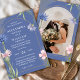 Announce your special day with this elegant dusty blue floral wedding invitation featuring delicate wildflowers and a refined gold arch frame. Soft blue and blush botanical illustrations create a romantic, timeless look—perfect for fall weddings, garden ceremonies, and classic outdoor celebrations.