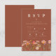 This Wildflower Boho Fall Rustic Floral Terracotta Rust Beige Wedding RSVP Enclosure Card that includes meal options, numbers attending and food allergies is the perfect addition to your wedding invitation suite, designed to seamlessly complement the boho charm of your celebration. Featuring hand-painted watercolor wildflower meadow in warm, autumnal tones of Rust, brown, burnt orange, terracotta, purple, yellow, coral, burnt umber, peach, and soft pink, this card adds a touch of elegance and whimsy. With an easy-to-use template, you can effortlessly customize the RSVP details for your special day. The beautiful bohemian rustic florals create a refined yet nature-inspired aesthetic, while the elegant script typography adds a modern contrast. Designed with original artwork by Catherine Sweetman, this enclosure card captures the essence of your celebration, inviting your loved ones to join you in a warm, unforgettable celebration of love.