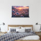 Magical sunset with wildflowers bathed in golden light. Sky in shades of pink and purple with mountains in the background. Ethereal and romantic image ideal for decor and creative projects. Bring serenity and natural beauty to your space with this enchanting landscape.