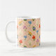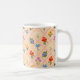 A charming wildflower pattern featuring delicate blooms arranged in a playful harlequin lattice on a warm blush background.