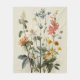 A lively gathering of wildflowers in shades of blue, white, yellow, orange, and pink stands gracefully with delicate green foliage. This classic botanical illustration captures the fresh charm of a summer meadow on a soft neutral background, evoking natural beauty and tranquility. Perfect for kitchen wall art, canvas prints, greeting cards, throw pillows, mugs, and home décor that brings gentle countryside serenity to any space.