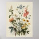 A lively gathering of wildflowers in shades of blue, white, yellow, orange, and pink stands gracefully with delicate green foliage. This classic botanical illustration captures the fresh charm of a summer meadow on a soft neutral background, evoking natural beauty and tranquility. Perfect for kitchen wall art, canvas prints, greeting cards, throw pillows, mugs, and home décor that brings gentle countryside serenity to any space.