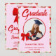 Wildflower Red Gingham Bow Photo Graduation Inbjudningar