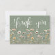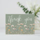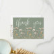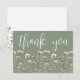 Wildflower Thank You Card. This minimalist and elegant design is perfect for bridal showers, baby showers, or anyone who loves a simple, timeless style. The front features a sage green background with “thank you” displayed in a graceful script font, with a minimal arrangement of simple wildflowers along the bottom in muted, elegant tones of blush pink, ivory, soft yellow, and subtle neutral accents with delicate green leaves for a refined, airy touch.