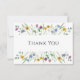 This floral thank you card is decorated with delicate watercolor flowers and foliage in pastel colors. Thank You is written in stylish typography.