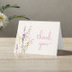 An elegant light cream baby girl shower thank you card featuring "thank you" showcased in a stylish pink calligraphy script, boho-inspired watercolors of dainty purple, pink and yellow wildflowers. On the inside, personalize your thank you message and add your name in a signature-like script, or leave blank for a hand-written note.