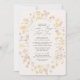 En boho bröllopsinbjudan med modern touch. En vild blomsterlig mjuk rosa och blekgul dubbel valv ram omger bröllopsinformationen på en elfenbensvit / krämfärgad bakgrund. På baksidan finns mallutrymmen för att lägga till detaljer och QR-kod för dina gäster att skanna och svara på din webbplats. Perfekt för vår, sommar eller höst.
