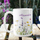 Bring a touch of nature to your morning routine with our Wildflower and Butterflies Custom Name Mug. This beautifully designed ceramic mug features a delicate arrangement of watercolor wildflowers paired with vibrant and whimsical butterflies, creating a serene and cheerful aesthetic - like a spring or summer meadow. The design wrap around the mug. Personalize it with your name front and back or a loved one’s for a truly unique gift that feels special and thoughtful.