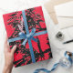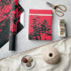 En abstrakt konstdesign av svarta vilda blommor som silhuetterats mot ett rött himlar.