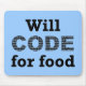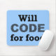 Will Code for Food mousepad. Vem kör inte kärlek dator humor? Köp den här roliga muspekaren åt dig själv eller som en gåva till den speciella datorprogrammeraren i ditt liv!
