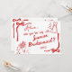 Personalized Bridesmaid Proposal Cards. Invite your cherished friends and family to stand by your side on your special day with our Personalized Bridesmaid Proposal Cards. These hand-drawn, red-colored cards are designed with a unique touch, perfect for adding a personal flair to your proposals. Whether you're asking your beloved friends to be your Bridesmaid, Maid of Honour, Best Man, or even your adorable little Flower Girl and Ring Bearer, our collection offers a heartfelt way to pop the question. Each card provides the opportunity to craft a message that truly resonates, ensuring your loved ones feel honored and excited to be part of your wedding journey. Make your proposal one to remember with these beautifully crafted keepsakes. This collection is in Bright Red Color.