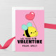 This adorable kids Valentine’s Day card features a kawaii bumble bee holding a heart-shaped balloon with the playful phrase “Will You Bee My Valentine.” Set on a soft light pink background, the cheerful illustration and fun fonts create a sweet and friendly design kids will love. Perfect for classroom Valentine exchanges, school parties, or sharing with friends, this charming card is a cute way to celebrate Valentine’s Day and friendship.
