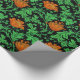 Omslagning papper i vintagen William Morris blommigt: Förvrängning av anemonblommor och löv, digitalt förbättrad och färgad - emerald grönt löv, blommor i djupa mandarin orange och guld mot svart bakgrund