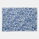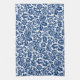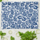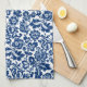 Kökshandduk i vintagen William Morris blommigt Damaskmönster, digitalt förstärkt och färgad, i djup koboltblått på vit bakgrund