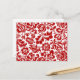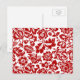 Vykort i vintagen William Morris blommigt Damask-mönster, digitalt utökad och färgad, i djupt kinesiskt rött på vit bakgrund