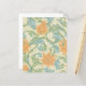 Skrapbook papper inspirerad av en vacker blommigt tapet av William Morris (Single stam, 1905). I förgrunden finns några stora blommor i orangen omgivna av en mönster av stjälkar och löv, bakom detta finns mönster i små löv i blek. William Morris på sin höjd: en utvecklad mönster, många färg (orange, blått, grönt och grädde) och fortfarande en harmonisk helhet, allt går ihop.