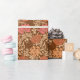 Inpackning av papper i en vintage William Morris, art nouveau, det blom- trycket av stylized chrysanthemums, digitalt förhöjt och färgat, i solbränna, rostar terrakotta och korall, på en djup choklad - brun bakgrund