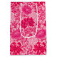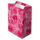 Giftsäck i vintagen William Morris, Art nouveau, blommigt print of stilized chrysanthemums, digitally Enhanced and färgad, in shades of deep fuchsia rosa, azalea rosa, and burgundy, on a blek rosa bakgrund