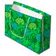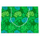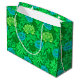 Stora presentsäckar i vintagen William Morris, Art nouveau, blommigt avtryck av stilized chrysanthemums, digitalt förbättrad och färgad, i ljusgrönt och djupgrönt kalk och akva, på en bakgrundsbild av en grönt som går att hitta.
