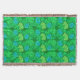 Filt i vintagen William Morris, Art nouveau, blommigt print of stilized chrysanthemums, digitally Enhanced and färgad, in light and deep lime green and aqua, on a emerald grönt bakgrund