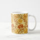 Kaffe mugg i vintagen William Morris, Art nouveau, blommigt av stiliserade krysantemum, digitalt förbättrad och färgad, i nyanser av senap guld, karamellbrun och koppar, på krämbakgrund