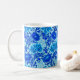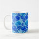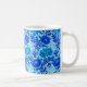 Kaffe mugg i vintagen William Morris, Art nouveau, blommigt av stiliserade krysantemum, digitalt förbättrad och färgad, i nyanser av denim blue och deep indigo på ljusblå och vit bakgrund