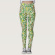 Leggingar i mönster William Morris Art nouveau av citroner, granatäpplen och persikor, med blommar, på lövhaltig grenar - frukt i gult och korallisk orange, med grönt löv, mot mönstrad, gult och vit bakgrund
