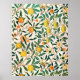 A seamless vintage-style botanical pattern featuring lemons, oranges, peaches, and blooming flowers intertwined with detailed green leaves and branches on a soft pastel background.