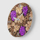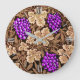 Klock i vintagen William Morris tapestry mönster av djupvioletta lila druvor mot bakgrund av ljus till mörk chokladbrun vinodling och löv, digitalt förbättrad och färgad