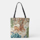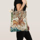Tryckt med väskan i en William Morris-tapebok med tre hjortar bredvid en brook i en fantasi-skogsmiljö av träd i skuggor av mjuk grönt och akva, mot en beige bakgrund