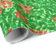 Omslagning papper i ett William Morris Art nouveau mönster av honungssuckle-blommor mot bakgrund av viner och löv - blommor i korallfärgad orange och korallrött, med emerald grönt löv, mot bakgrund av pastellbakgrund i grönten