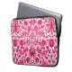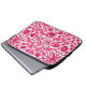 Neoprene sleeve i vintage William Morris mönster av hyacinter, tuliper och löv, i burgundskärnor och rosa, accentuerade med mörk maron, på vit bakgrund