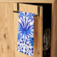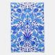 Handduk i en vintage William Morris mönster av hyacinter, tulpaner och löv, i kobolt- och halkblått, accentuerad med mörk marin, på vit bakgrund