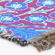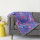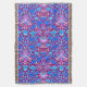 Filt i vintagen William Morris mönster av hyacinter, tulpaner och löv, i nyanser av akva och koboltblått, accentuerad med fuchsia och blek rosa, på djup ametyst lila bakgrund
