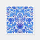 Pappra blöjor i en vintage William Morris mönster av hyacinter, tulpaner och löv, i koboltskugga och cerulenblått, accentuerade med mörk marin, på vit bakgrund