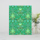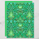 Pappra i vintagen William Morris mönster av hyacinter, tulpaner och löv, i skader av emerald och jade grönt, accinerade med akva och vit, på en djup grönt