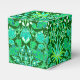 Favoritlåda i vintagen William Morris mönster av hyacinter, tuliper och löv, i skuggor av emerald och jade grönt, accentuerad med akva och vitt, på en djup grönt