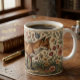 William Morris Inspired Pattern Fox in Flowers Coffee Mug Design by Ricaso. Inspired by Morris Vintage Designs, this modern take is stunning