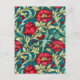 William Morris Inspired Red Flowers Mönster Vykort